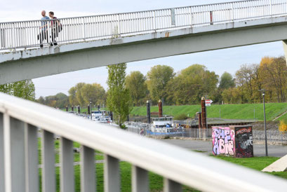 Mit Blick auf den Mülheimer Hafen